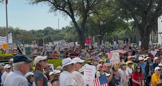 Naples, Fl. 7,000 people, Republican- Democrat- Independent; LGBTQ and straight; old and young; abled and disabled; different ethnicities-races-faiths; a beautiful cross section of the people of SW Fl coming together peacefully to exercise our 1st Amendment right to say NO to the current Administration. An amazing day of Democracy on full display!